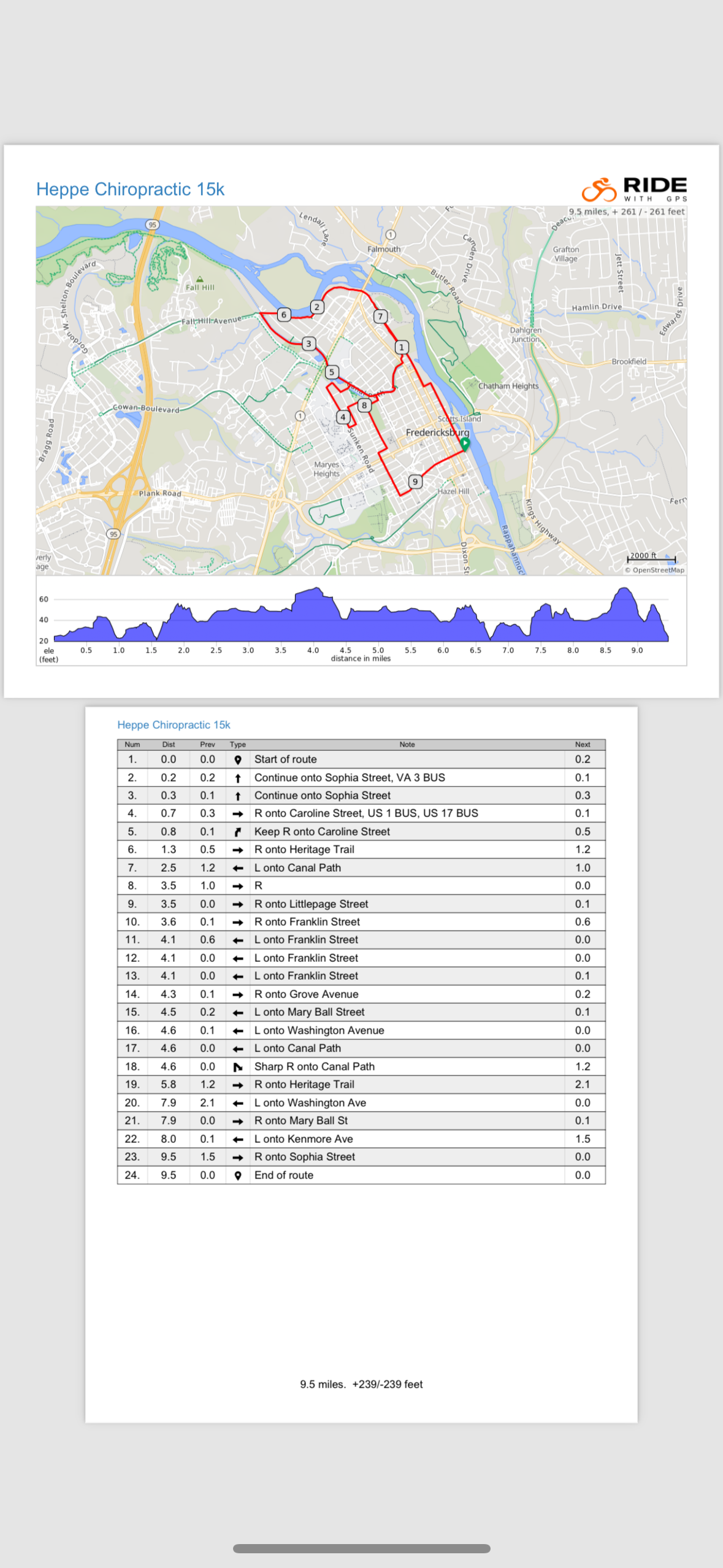 Heppe Chiropractic is proud to offer the only 15K race in Fredericksburg with a beautiful course that runs along the Rappahannock River and through the historic streets of downtown Fredericksburg and along the Heritage Trail and Canal Path. The course starts and ends at Riverfront Park off of Sophia Street. A post-race award ceremony will be held at Riverfront Park.